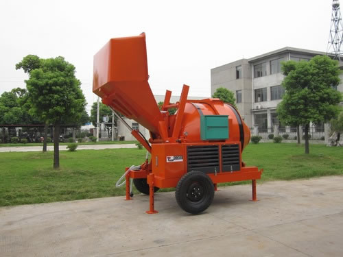 Mezclador de tambor eléctrico inversa con tolva hidráulica